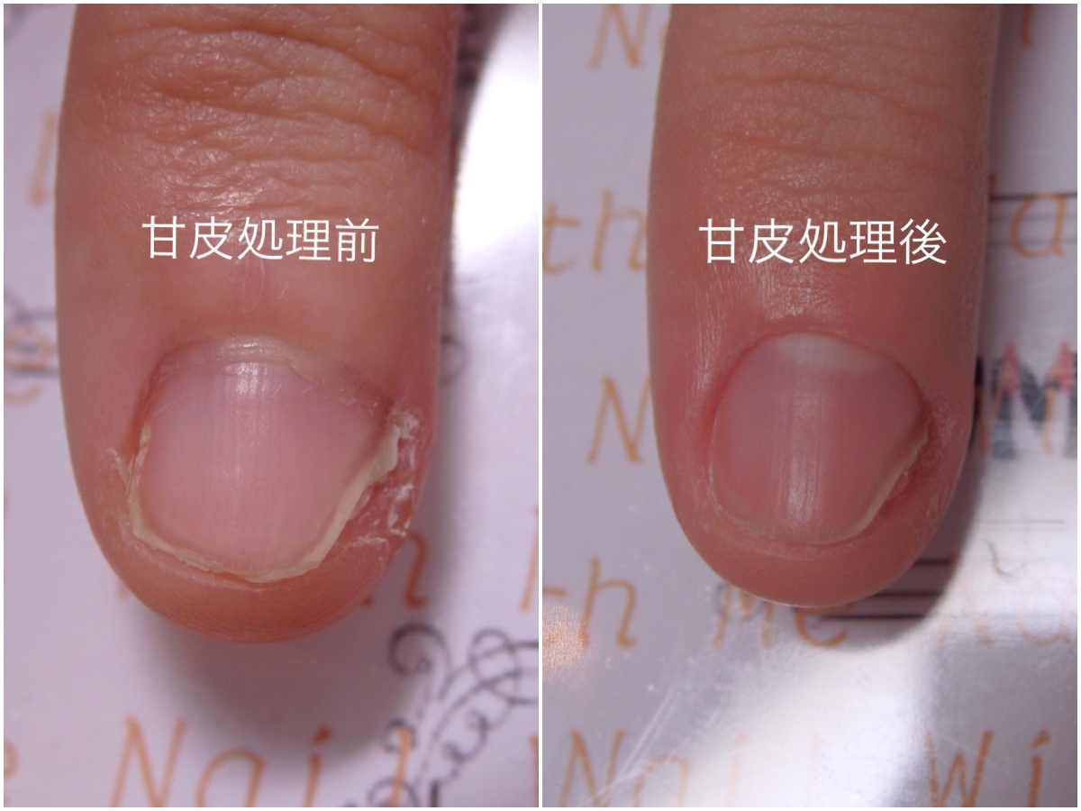 まず、爪には、爪が伸びると同時に、爪の周りの甘皮や爪の表面にも薄い皮が一緒に伸びてきています。