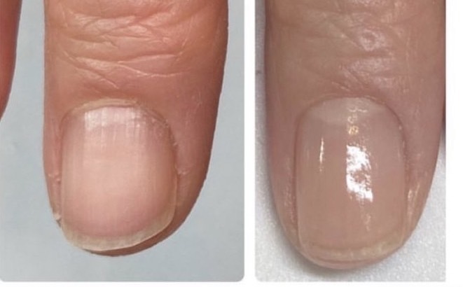 甘皮処理や爪の形を整えるためのケアをしていくと、短く丸っこい爪や、割れやすくかった爪が少しずつ“縦長で女性らしい形”に変わっていく。