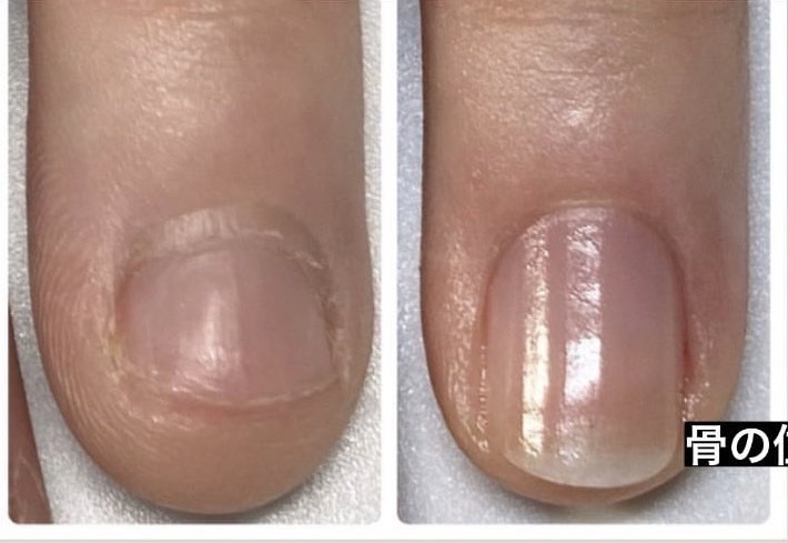 この爪を育てるネイルケアは、爪を作る細胞を活性化させ、本来の爪の形へと育てることができます。定期的にお手入れを続けると爪が縦長になっていきます。